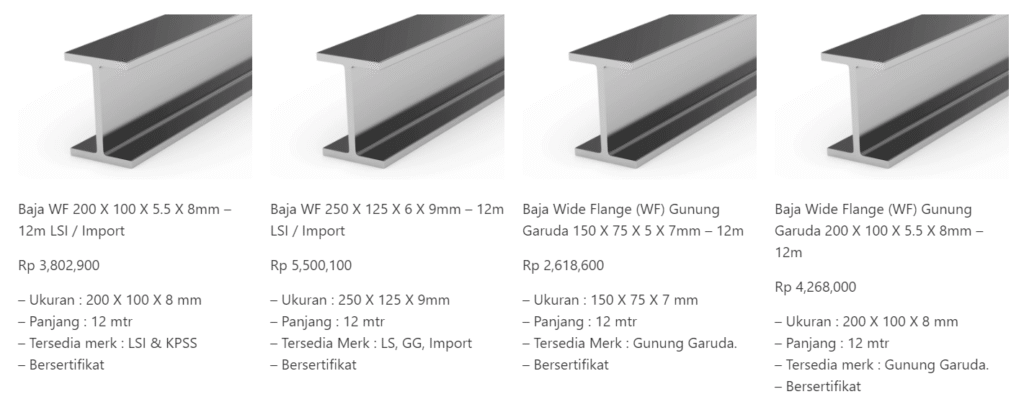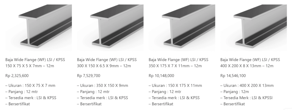 Kami menerapkan kebijakan harga yang transparan dan kompetitif. Sebelum Anda mengambil keputusan, sangat penting bagi Anda untuk mengetahui estimasi Harga Baja WF di Bekasi terbaru. Dengan menghubungi tim kami, Anda akan mendapatkan penawaran harga yang sesuai dengan harga pabrik, memotong mata rantai distribusi yang panjang, sehingga alokasi anggaran Anda bisa lebih efisien.